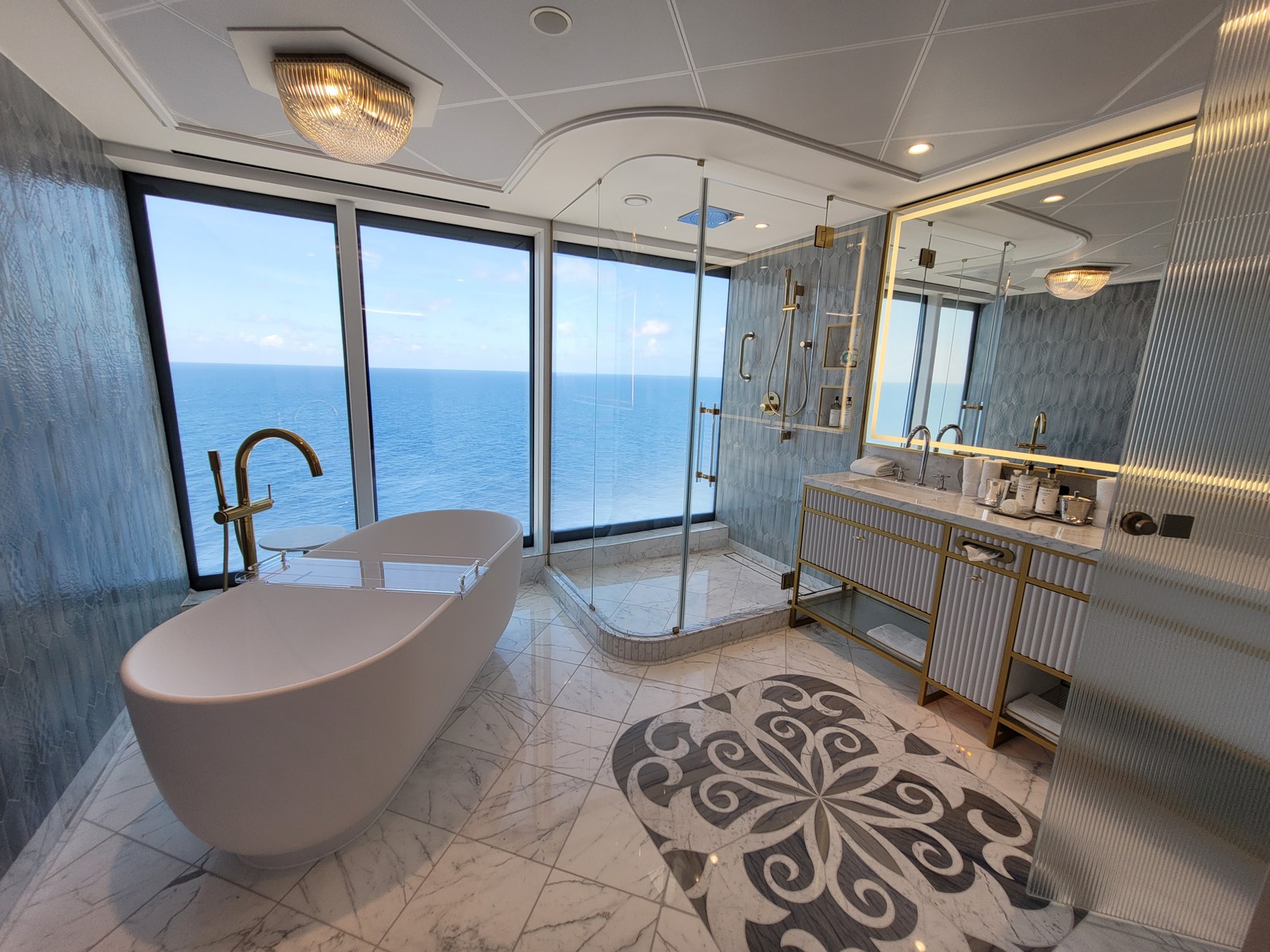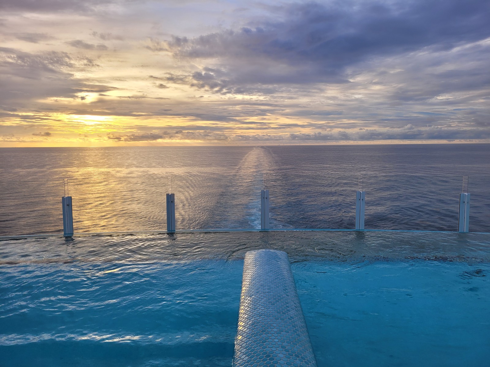 Na Quiet Cove,uma área exclusiva para adultos,há uma piscina de borda infinita com vista para a popa do navio