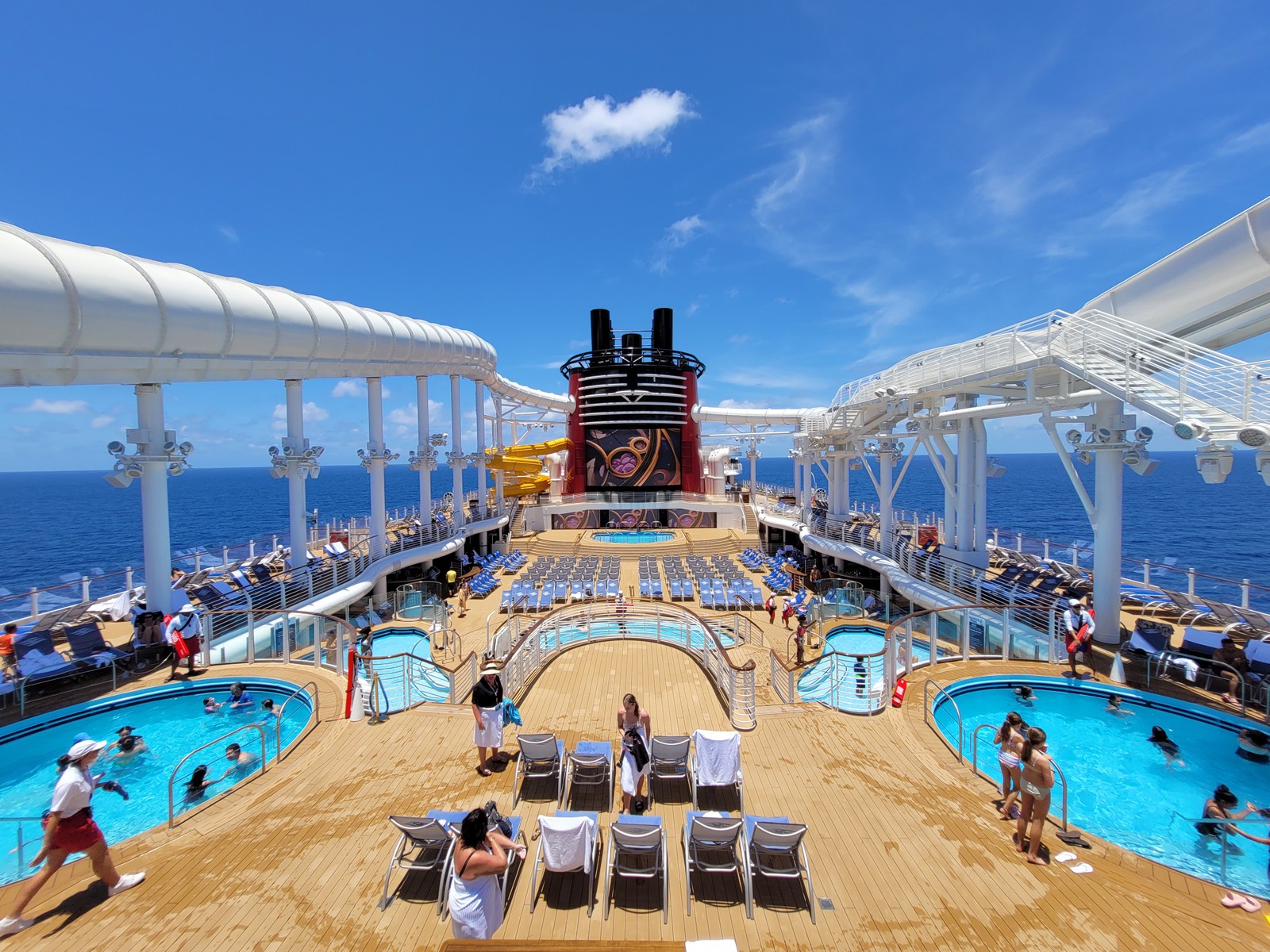 No deque 12 do Disney Wish há seis piscinas para famílias,o maior número entre os navios da companhia