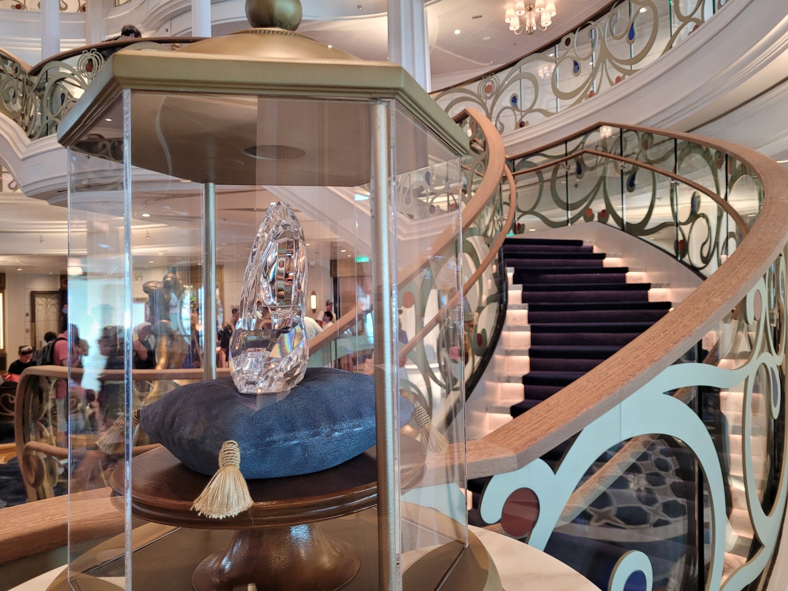 Detalhe no Grand Hall: o sapatinho de cristal de Ciderela ao lado da escadaria