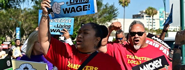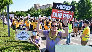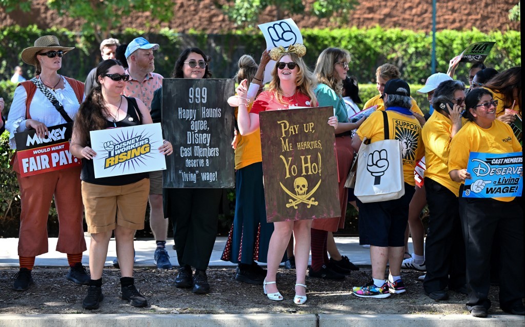 Publicidade Funcionários do parque da Disney na Califórnia protestam por melhores salários