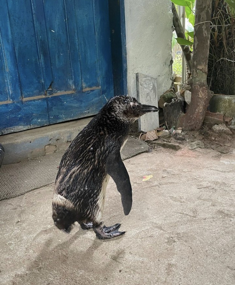 O pinguim resgatado pelo Ibama que visitou João Pereira — Foto: Reprodução/Redes Sociais