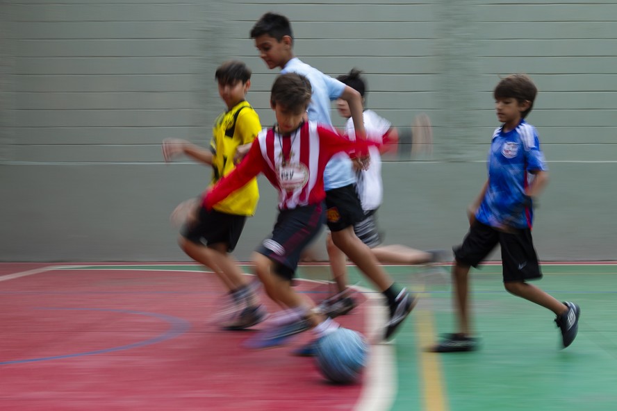 Crianças jogam bola em escola no Recreio dos Bandeirantes — Foto: Leo Martins