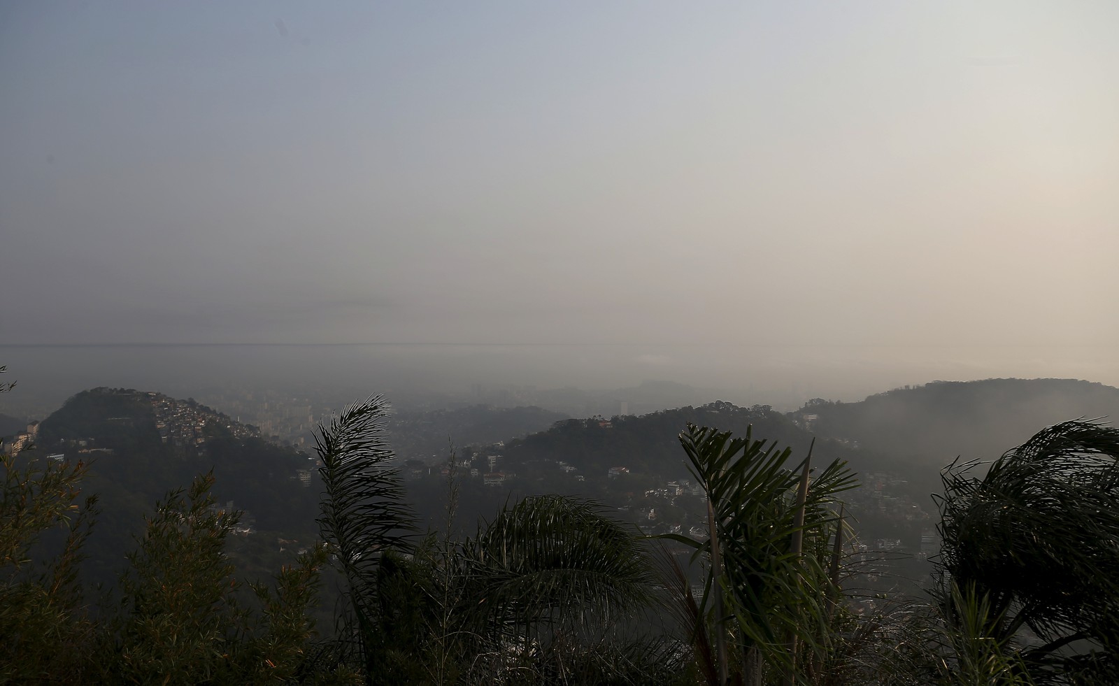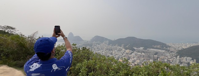 Quem visitou os pontos mais altos da cidade conseguiu observar a névoa que encobre a capital carioca — Foto: Ana Branco / Agência O Globo