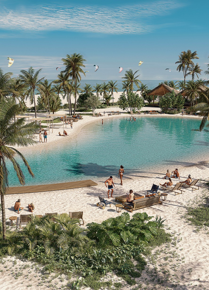 Pertinho dali,está outra novidade,o Carnaúba Wind House,clube para os amantes do kitesurf. Já na entrada há uma lagoa de águas azuis,rodeada por coqueiros e bangalôs. A inauguração será no mês que vem (já são quase 150 títulos vendidos com valores de R$ 236 mil a R$ 750 mil). O projeto também tem dedo de Miguel Pinto Guimarães,através da Opy,seu escritório com Sérgio Conde Caldas. “Criamos uma assinatura para que tudo converse com o redor e siga uma mesma estética. As moradas são como uma casa de pescador muito sofisticada”,conta Miguel.