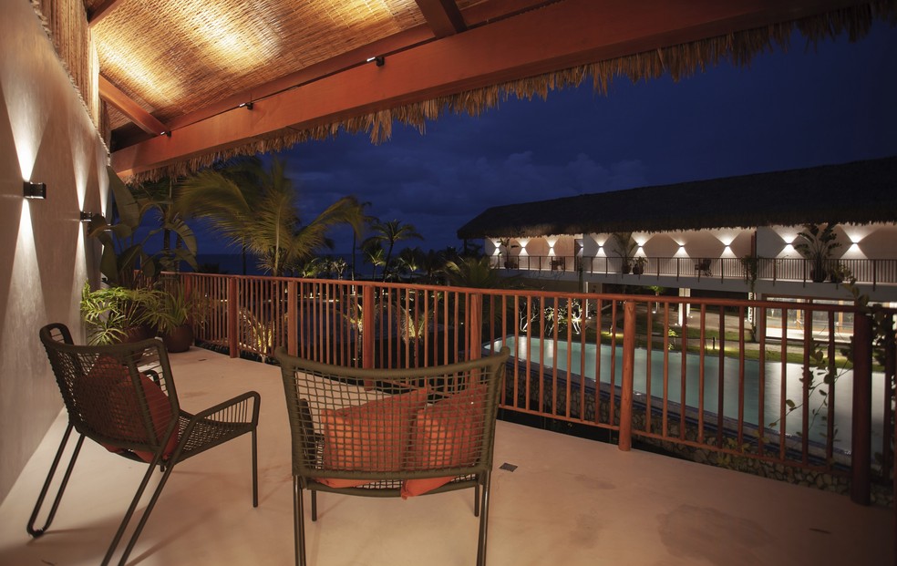 A suíte da Casa Siará: vista para o mar e arquitetura relaxante — Foto: Pedro Peracio