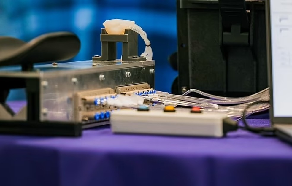 Sistema háptico bioinspirado (BAMH) funciona simulando todos os quatro receptores de toque no dedo humano — Foto: Divulgação / British Science Association