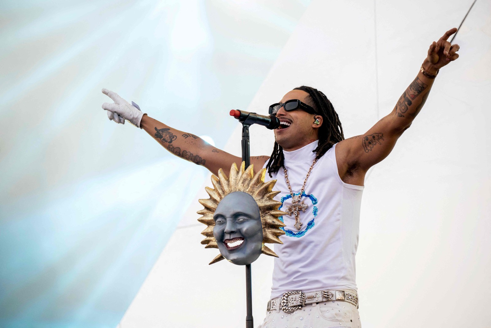 Cardosão,cantor do Funk Orquestra,na abertura do Palco Sunset,no Rock In Rio 2024 — Foto: Fabiano Rocha