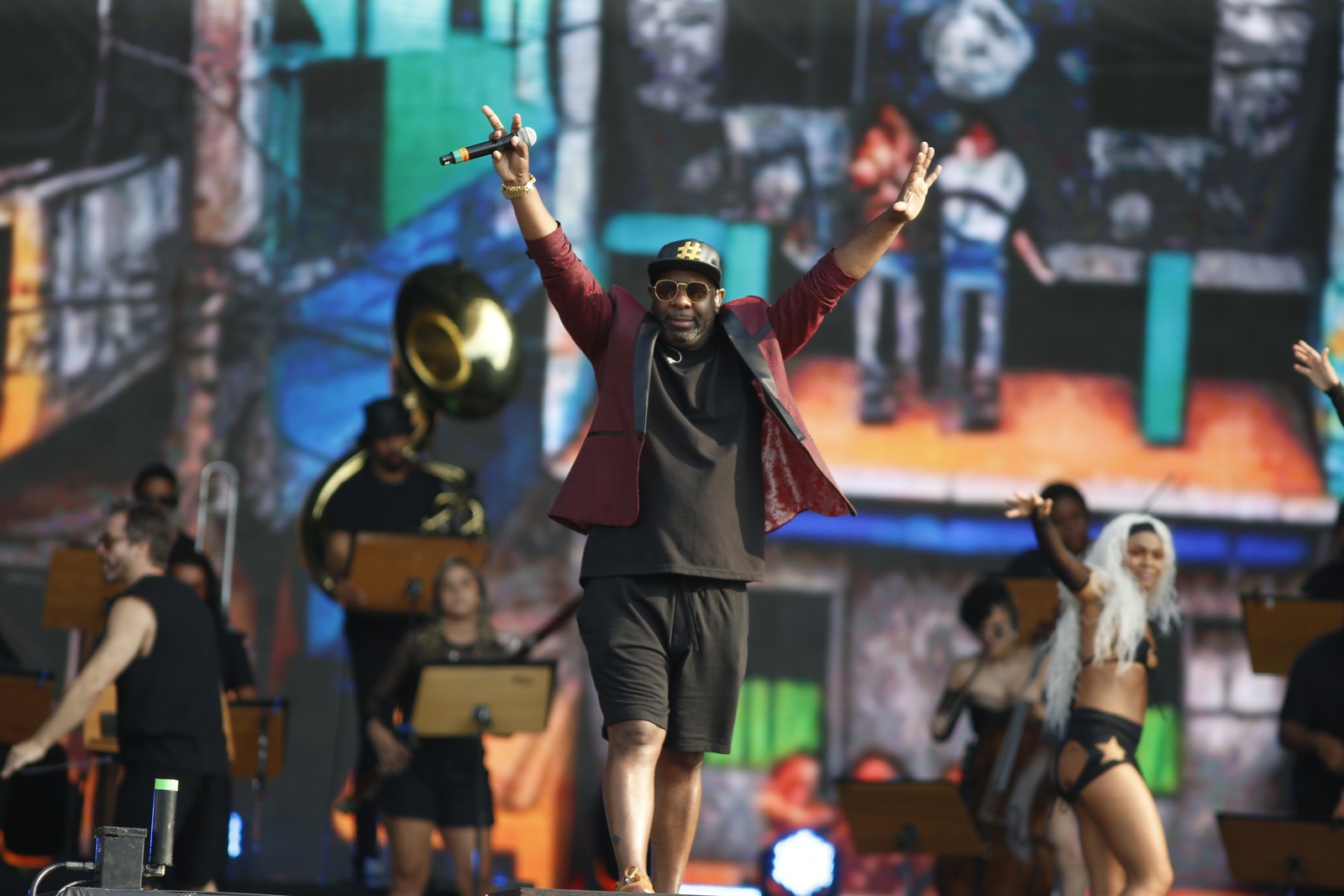 Funk Orquestra e Cardosão na abertura do Palco Sunset,no Rock In Rio 2024 — Foto: Fabiano Rocha