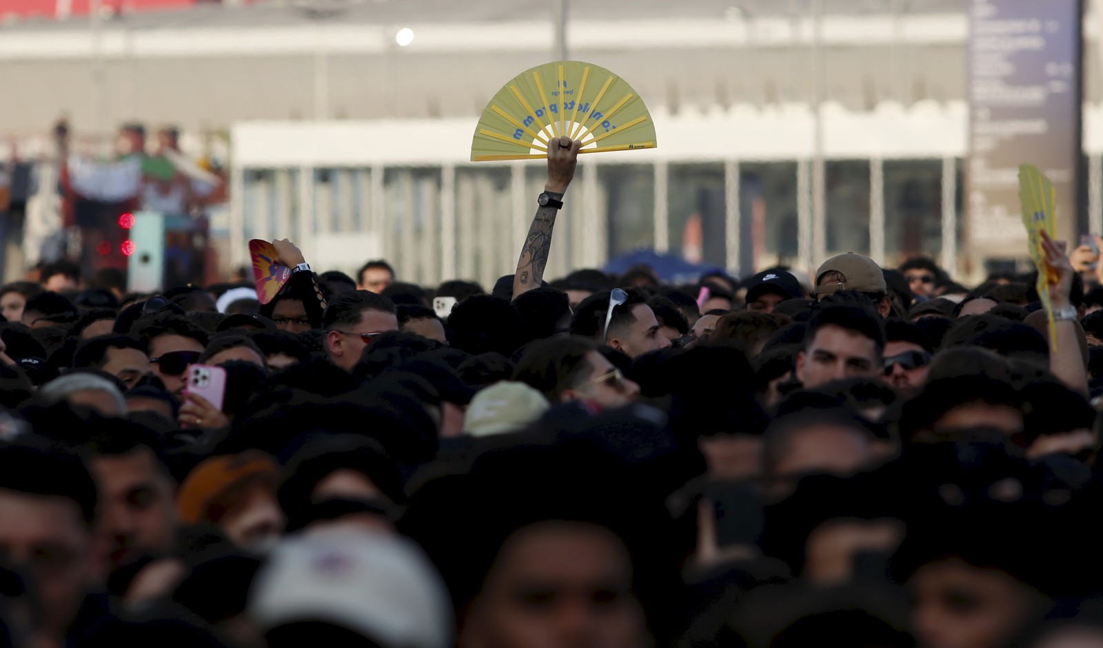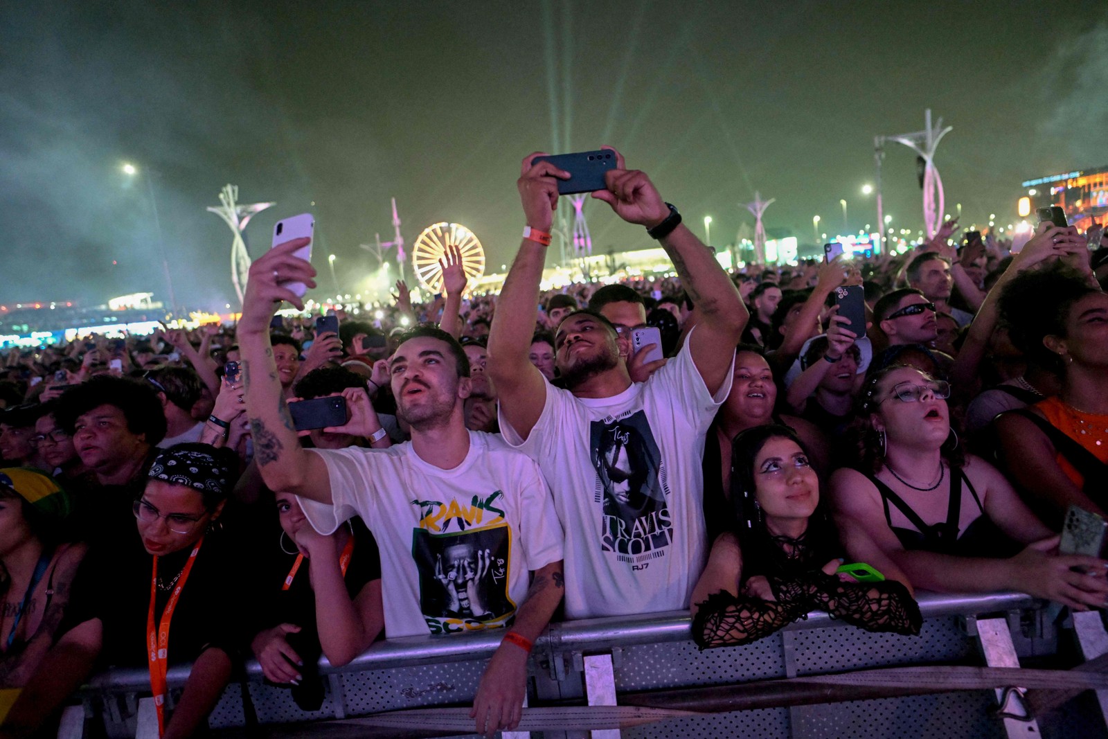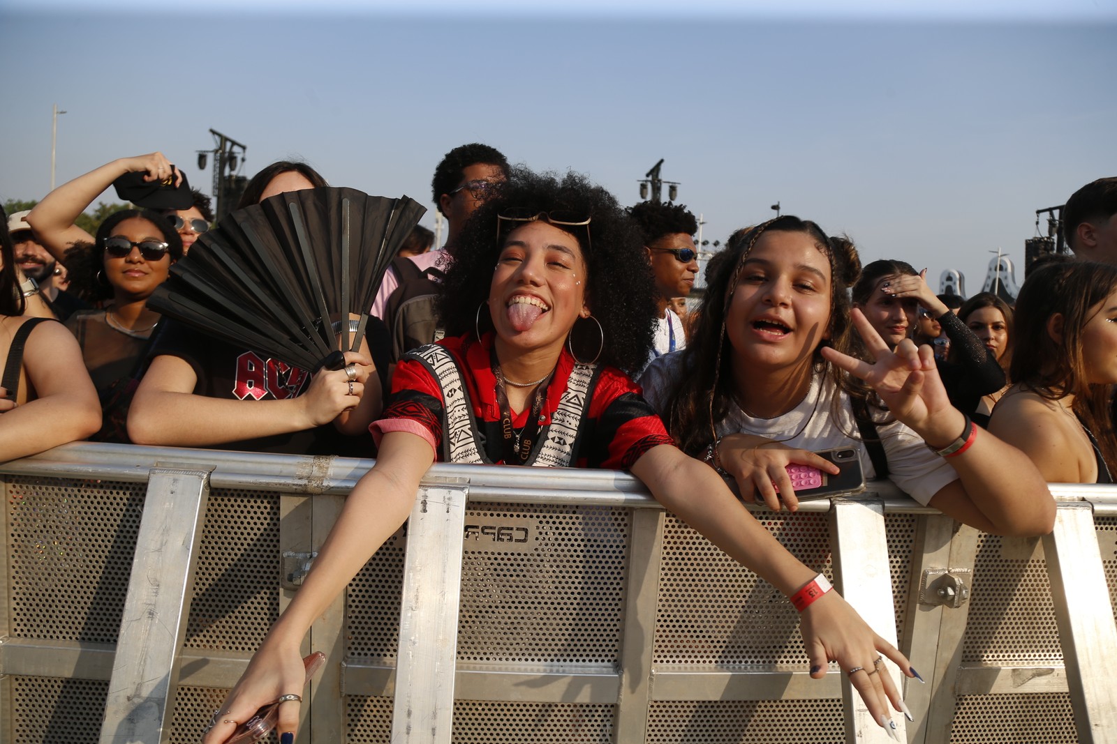 À espera de Travis Scott e 21 Savage,no primeiro dia do Rock In Rio 2024 — Foto: Guito Moredo