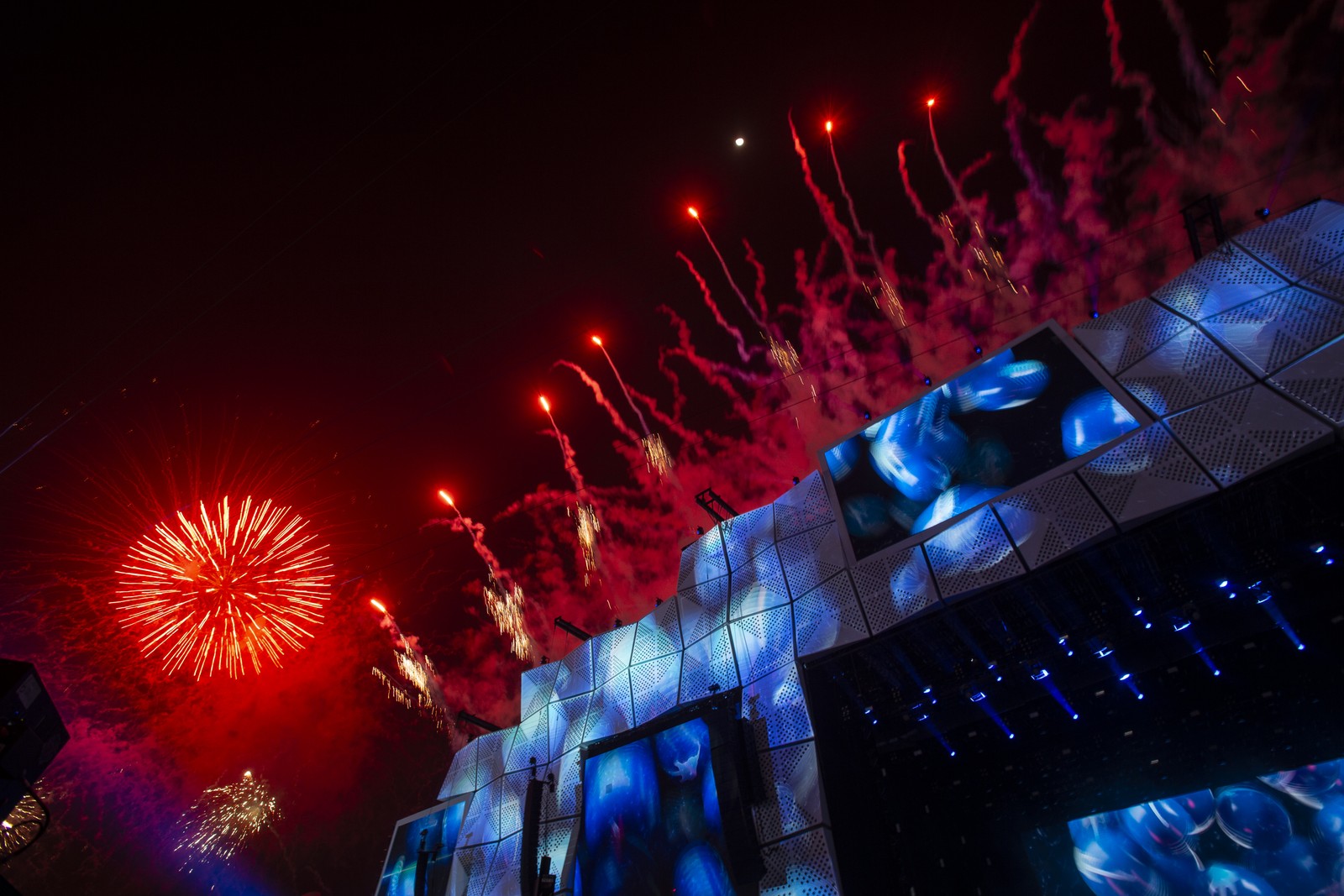 Queima de fogos no Palco Mundo,no Rock In Rio 2024 — Foto: Alexandre Cassiano