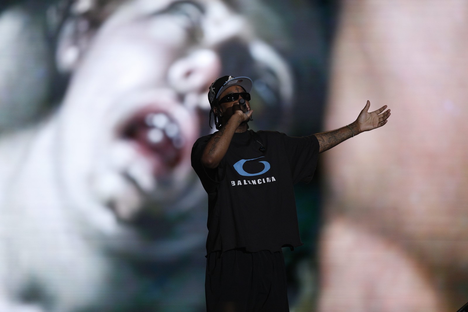 Rapper 21 Savage deixa multidão de fãs ansiosa pela apresentação de Travis Scott,atração principal do Palco Mundo,no primeiro dia do Rock In Rio 2024 — Foto: Alexandre Cassiano