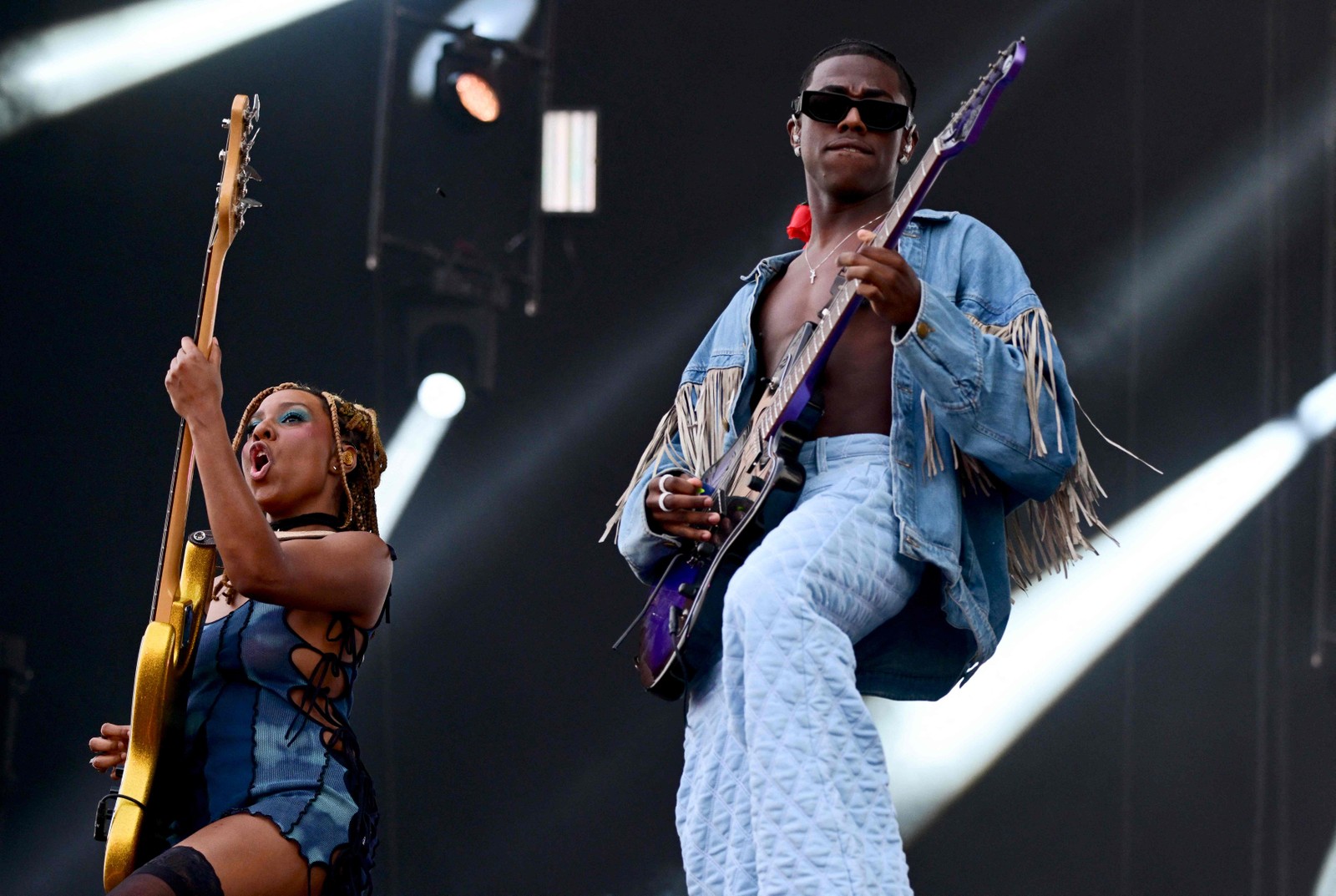Músicos do Matuê no show de abertura do Palco Mundo,no Rock In Rio 2024 — Foto: Mauro Pimentel/AFP