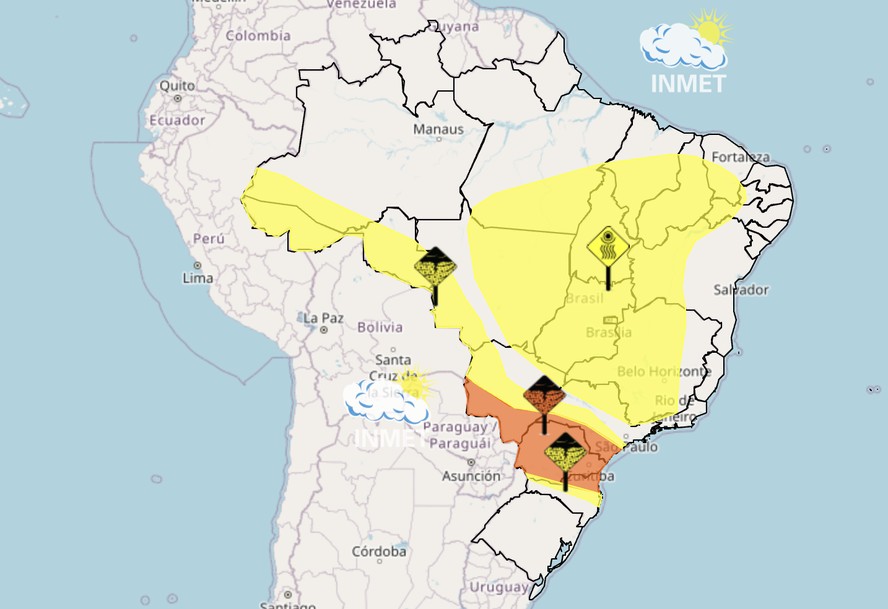 Inmet emite alertas meteorológicos para este domingo (15) — Foto: Divulgação