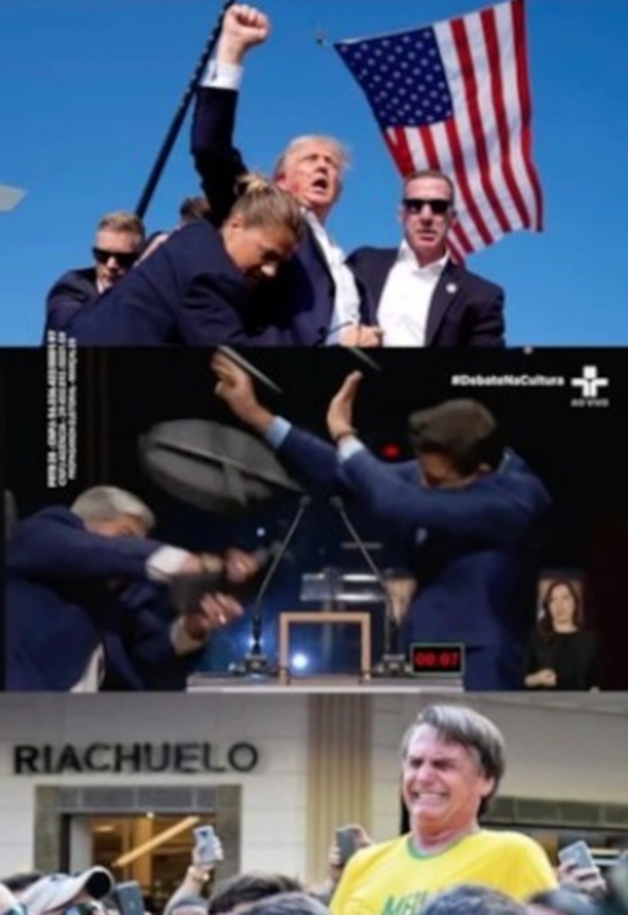 Após ter sido agredido por José Luiz Datena (PSDB) durante debate da TV Cultura neste domingo,o candidato à prefeitura de São Paulo Pablo Marçal (PRTB) utilizou as redes sociais para comparar a cadeirada do apresentador ao atentado a tiro contra o ex-presidente dos Estados Unidos Donald Trump,ocorrido em julho deste ano,e a facada no ex-presidente Jair Bolsonaro (PL),em 2018.