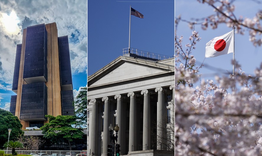 Bancos centrais do Brasil,EUA e Japão — Foto: Agência Brasil e Bloomberg