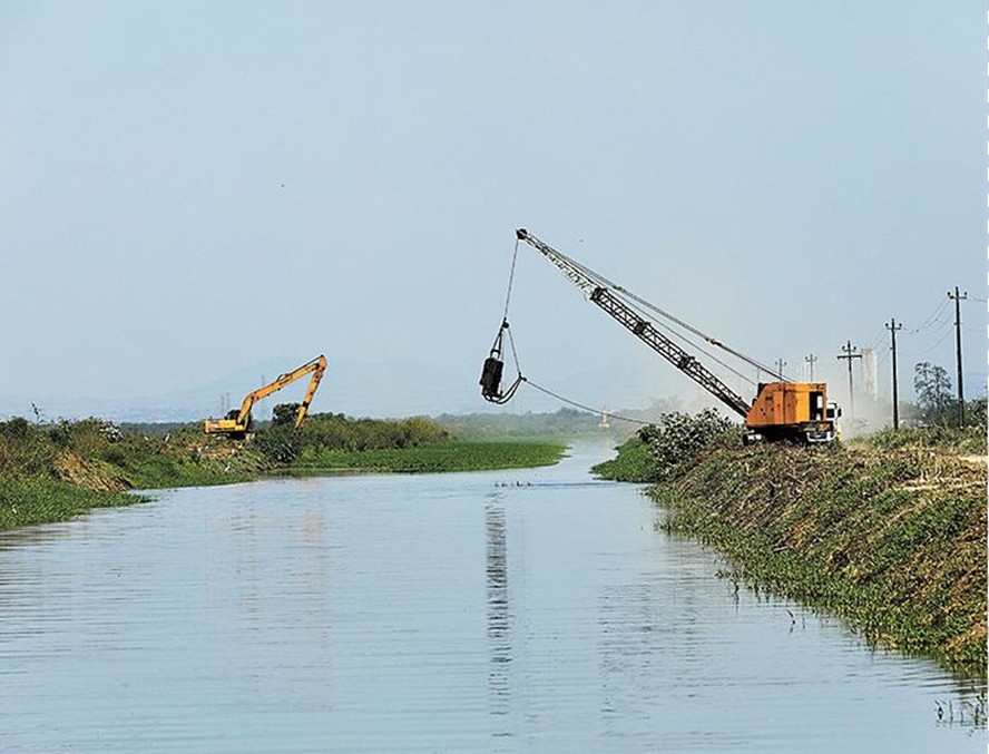 Obras de desassoreamento para reduzir efeitos da estiagem — Foto: Luis Alvarenga/ Cedae