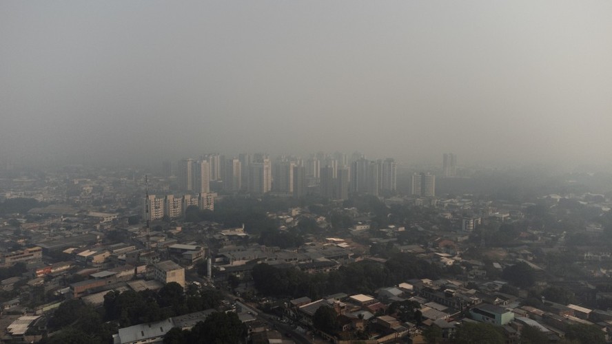 A cidade de Manaus é encoberta por fumaça resultante de queimadas — Foto: Raphael Alves/Agência O Globo