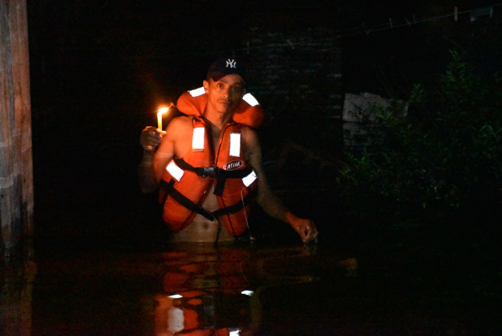 Homem é resgatado pela Marinha após usar vela para iluminar trajeto e escapar de enchente à noite,no Rio Grande do Sul — Foto: Divulgação