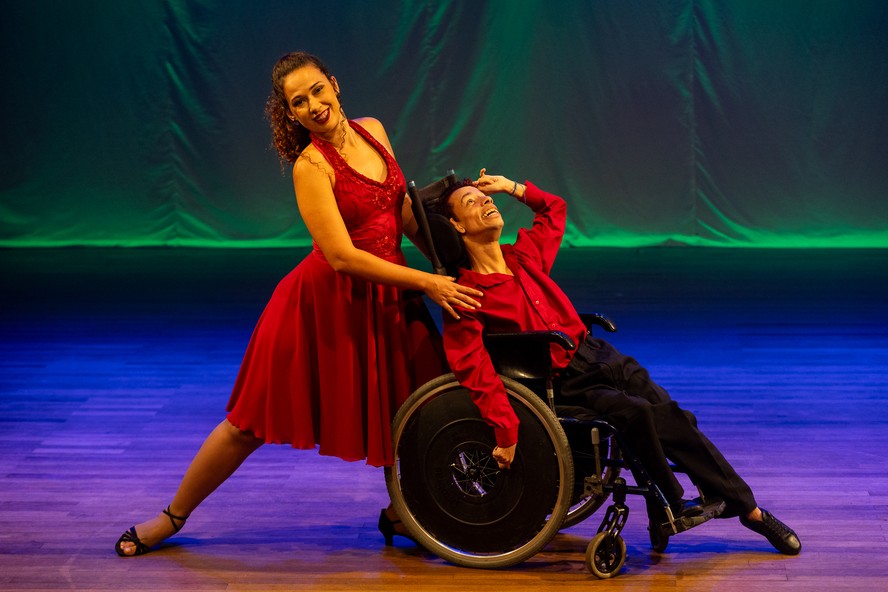 A professora Letícia Oliveira e Eduardo Justo no espetáculo “Corpos que dançam”,do projeto “Carioca sobre rodas” — Foto: Divulgação