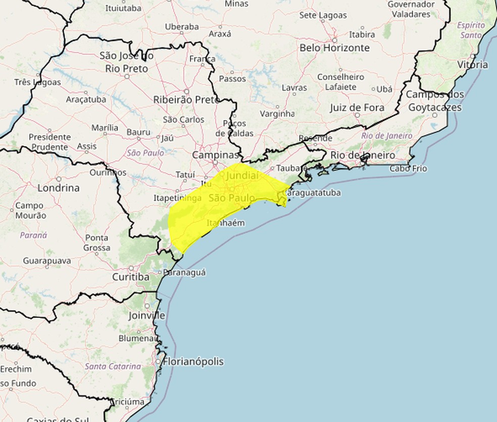 Para esta terça-feira,o Inmet prevê acumulados de chuva,com "perigo potencial". O aviso indica precipitações até 50 mm/dia e é válido até a manhã desta terça. Na capital paulista,a temperatura máxima deve ficar em 19°C,e a mínima em 12°C.