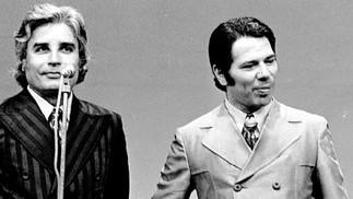Ao lado de Cid Moreira,quando a TV Paulista foi incorporada à Globo,Silvio seguiu pagando aluguel pelo seu horário dominical — Foto: Memória Globo