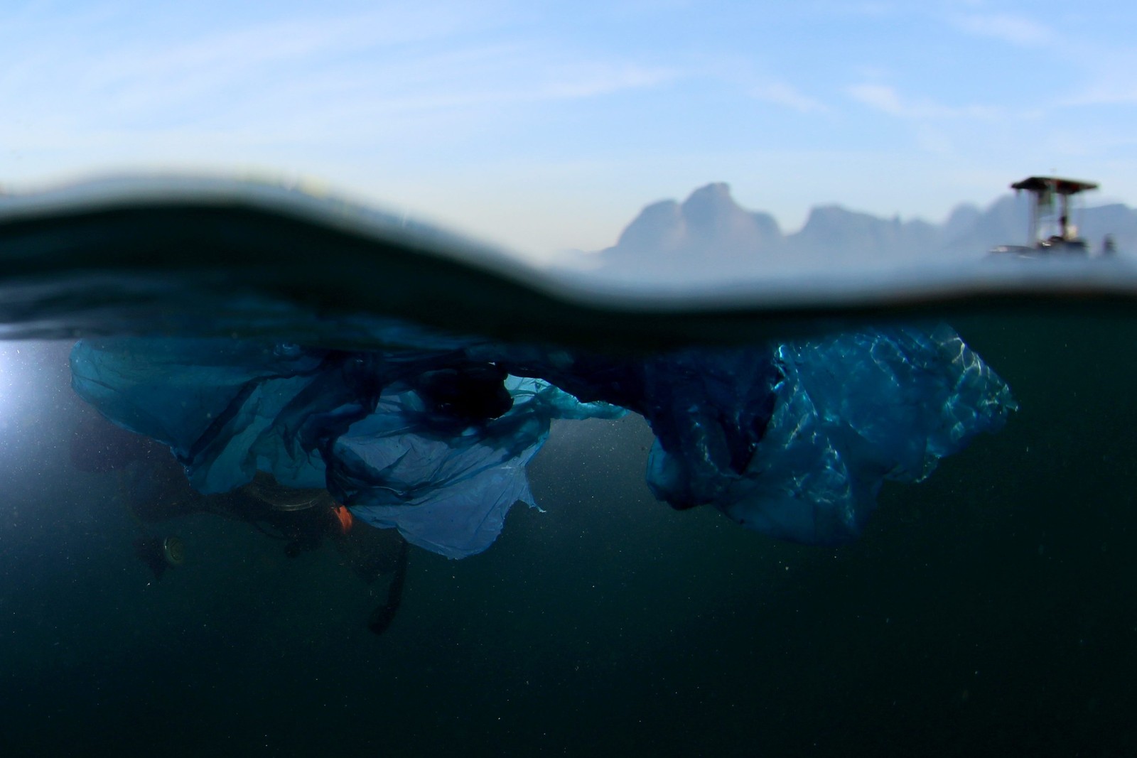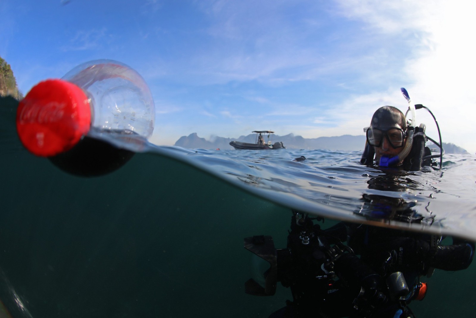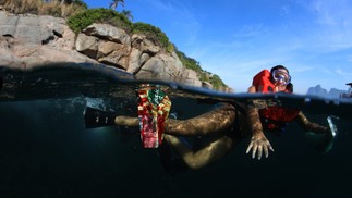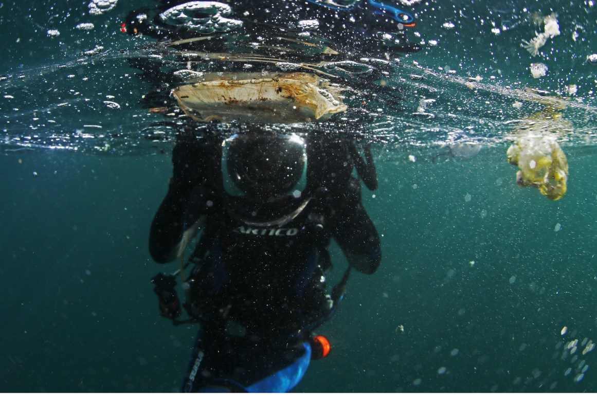 Pesquisador mergulha para coletar material que será analisado em laboratório da UniRio. Lixo superficial e visível representa 1% de todo o resíduo lançado no mar — Foto: Custódio Coimbra/Agência O Globo