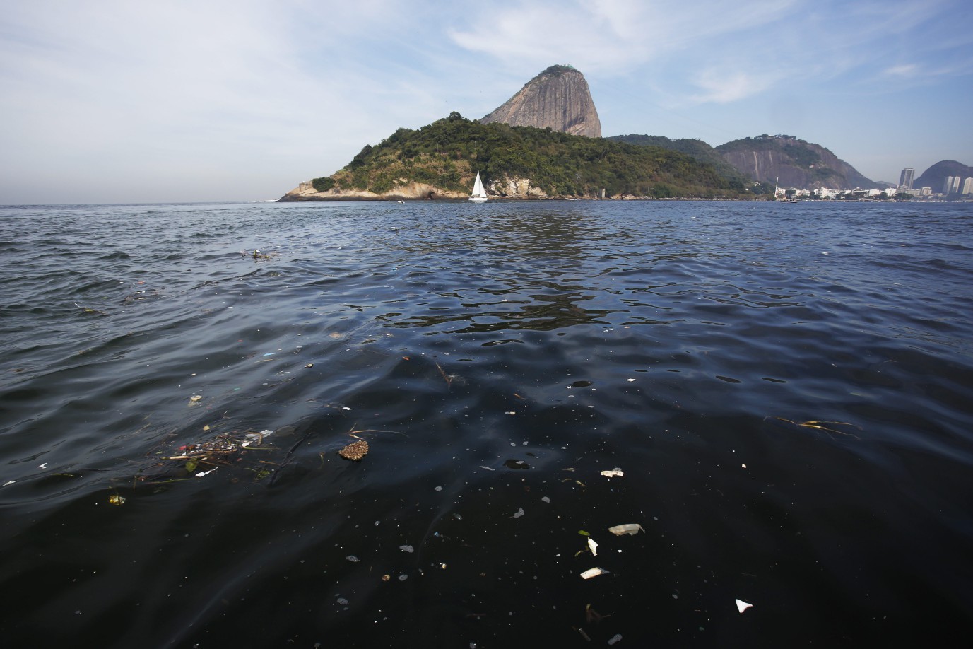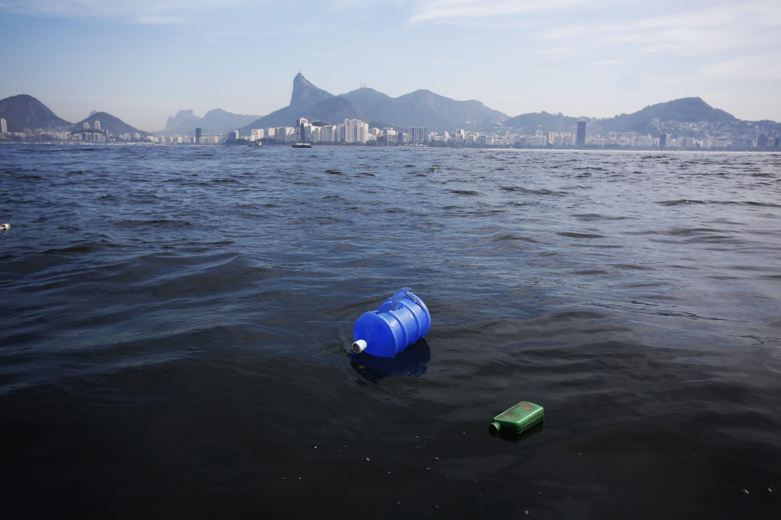 Garrafa pet e outros resíduos podem ser proveniente dos emissários,do despejo irregular de esgoto,do lixo dos barcos de turismo ou das praias — Foto: Custódio Coimbra/Agência O Globo