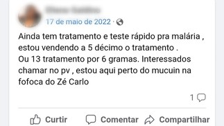 Garimpeiros trocam medicamento contra malária em gramas de ouro em grupo do Facebook — Foto: Reprodução/Facebook