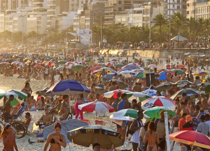 Praia do Arpoador lotada em plena quinta-feira — Foto: Dan Delmiro