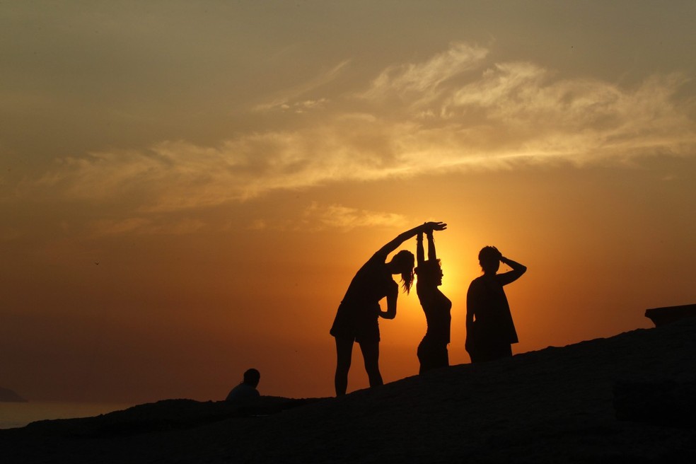 Cariocas se exercitam ao amanhecer no Arpoador: horário de verão foi suspenso em 2019 — Foto: Custodio Coimbraa/ Agência O Globo