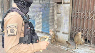 Polícia inicia 'caçada de estilingue' contra gangue de macacos nas ruas de Bangcoc; veja vídeo — Foto: Reprodução