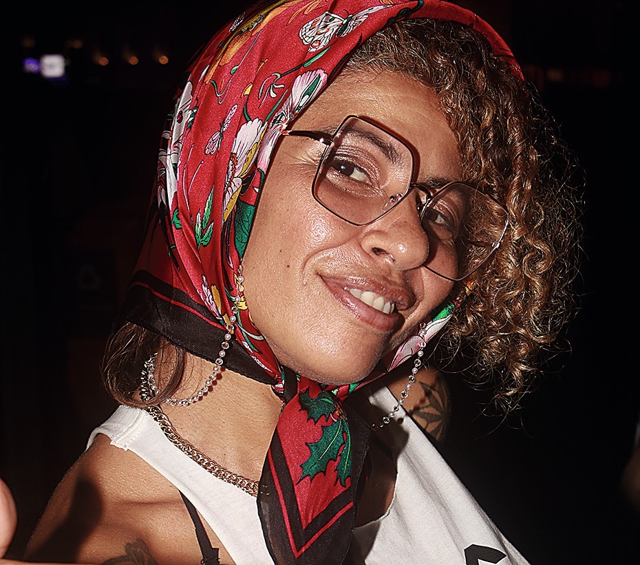A empresária Kananda Soares,46,entrou na onda dos lenços — Foto: Alllexandros
