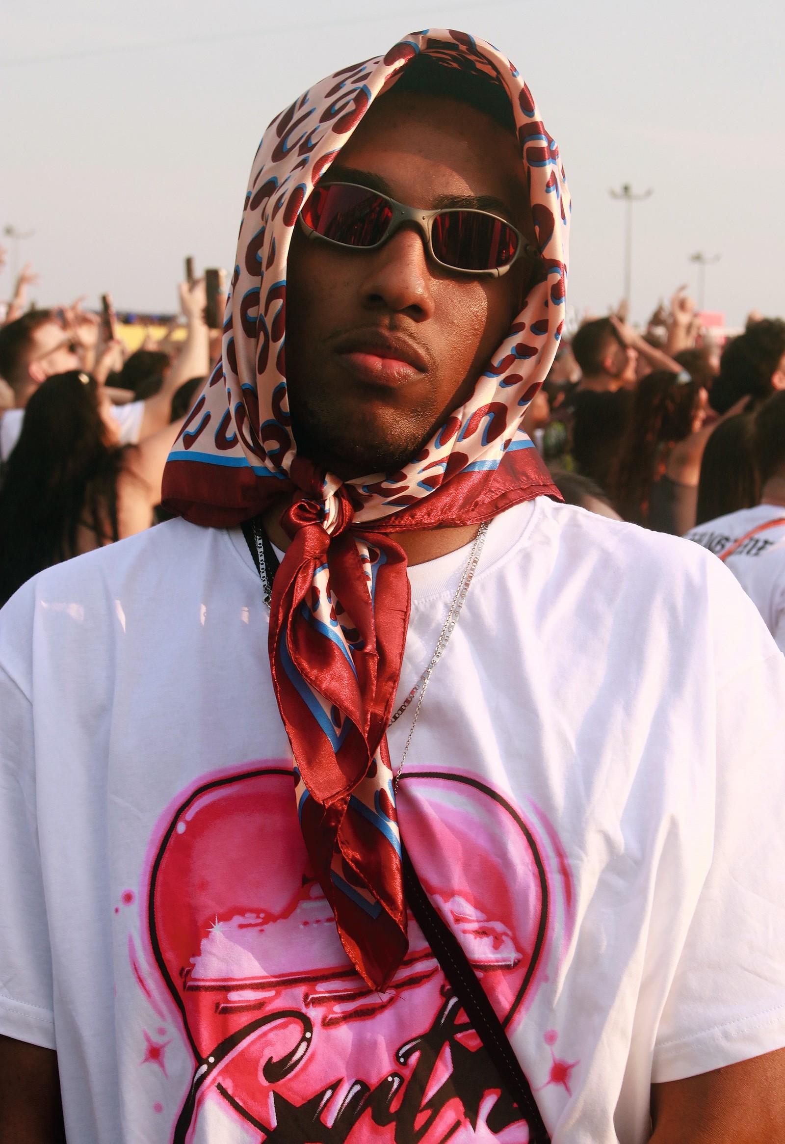 O cantor Matheus Amaral,entrou na moda do lenço com os óculos — Foto: Alllexandros