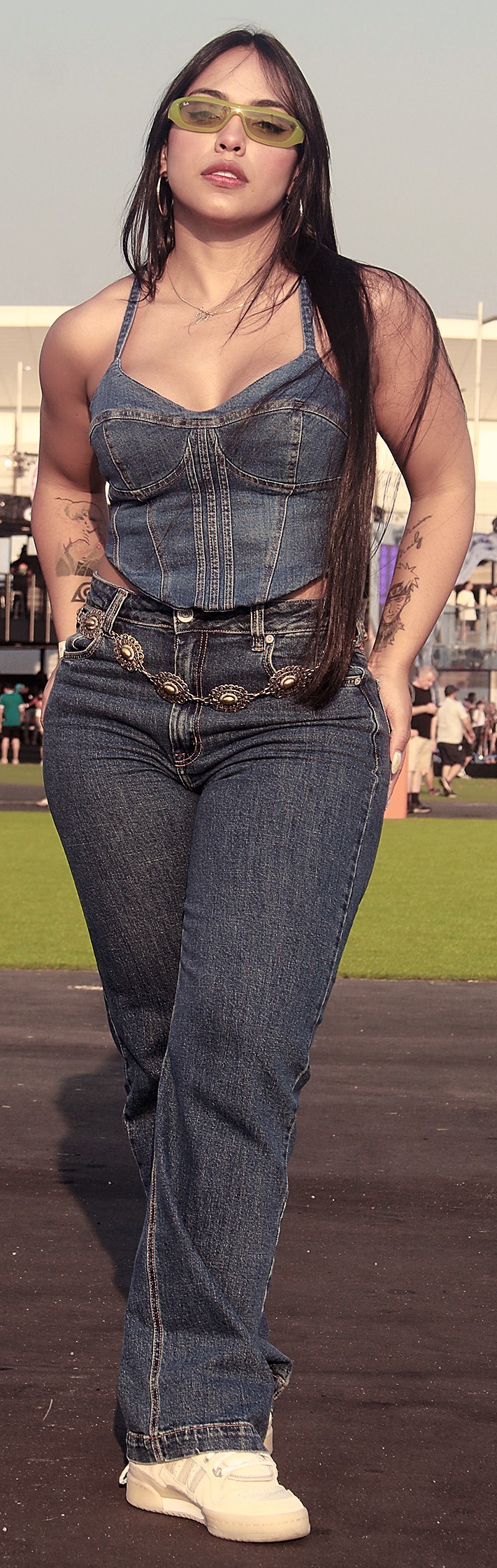 Ainda no quesito acessórios,body chains,ou correntes de corpo,que fazem as vezes de cintos e tops vazados,com recortes sinuosos,também foram hits,assim como looks all jeans. “O Rock in Rio é um lugar de celebração da música e da vida. A variedade de estilos é a cereja do bolo”,resume Manu.
