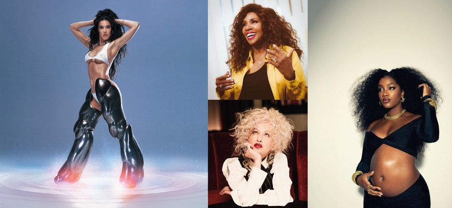 A partir da esquerda: Katy Perry,Gloria Gaynor,Cyndi Lauper e Iza,atrações do Dia Delas no Rock in Rio 2024 — Foto: Divulgação