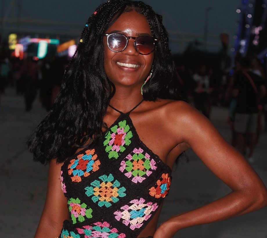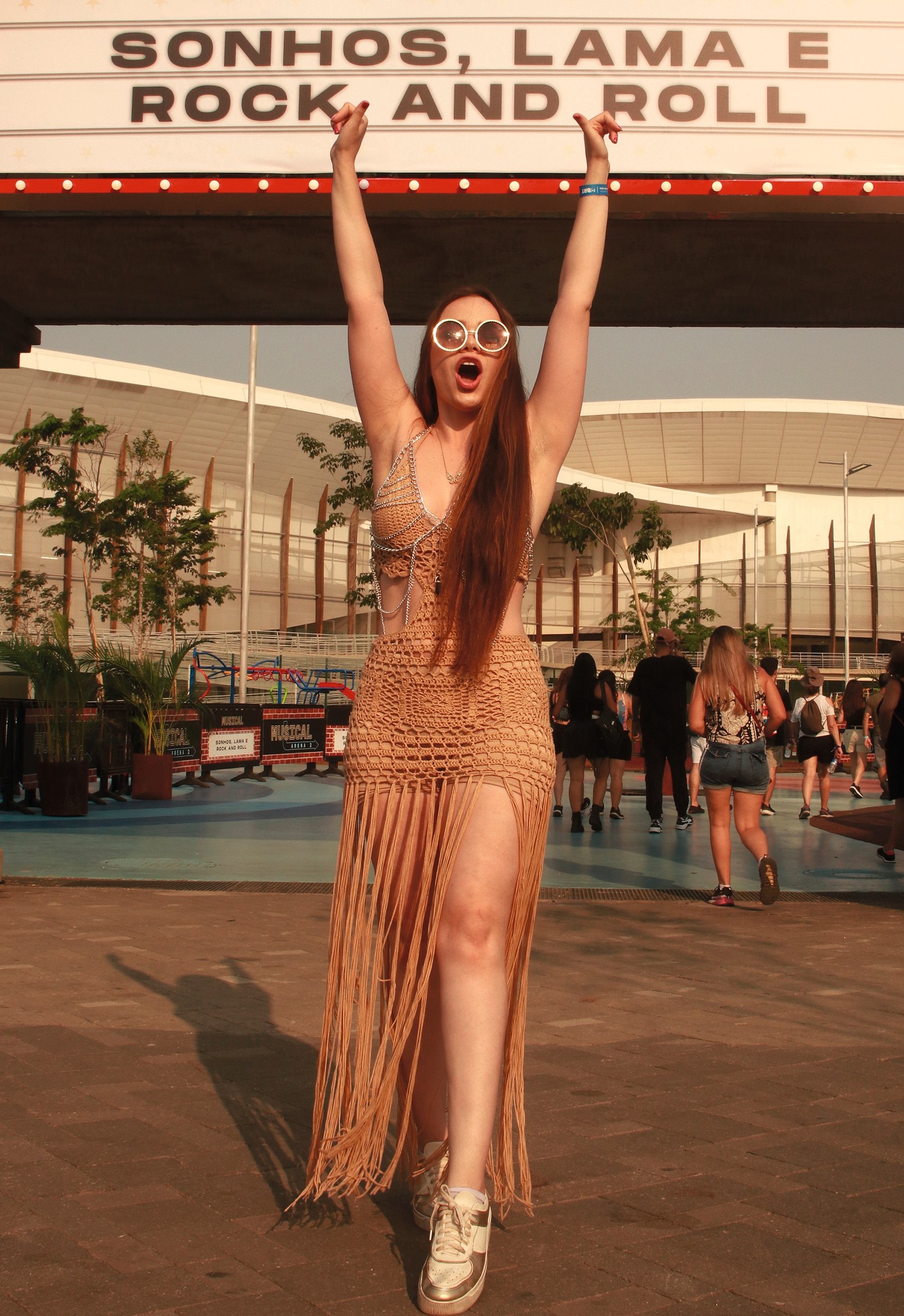 A apresentadora Emilia Arruda,de 22 anos,escolheu um vestido de macramê — Foto: Alllexandros