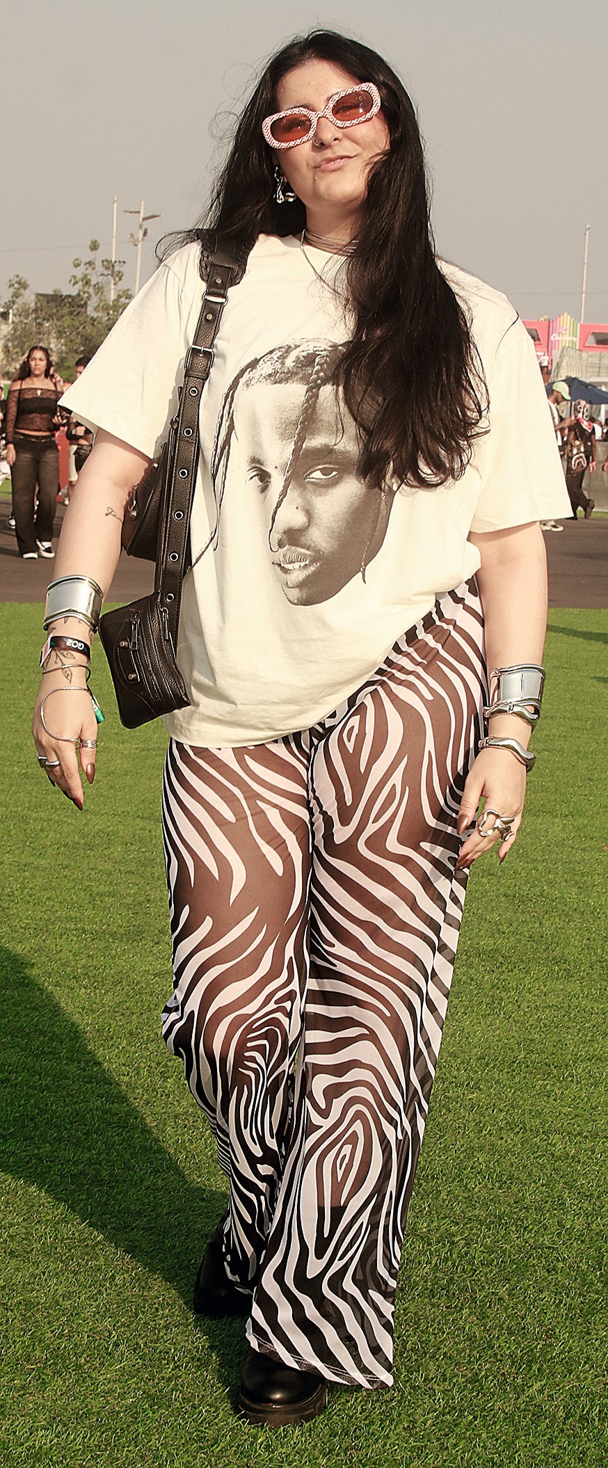 Zebra e camiseta no visual da jovem Lavínia Urtiga,de 21 anos — Foto: Alllexandros