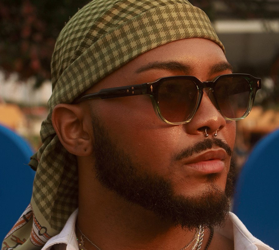 O cantor Matheus Amaral,de 24 anos,entrou na moda do lenço com os óculos — Foto: Alllexandros