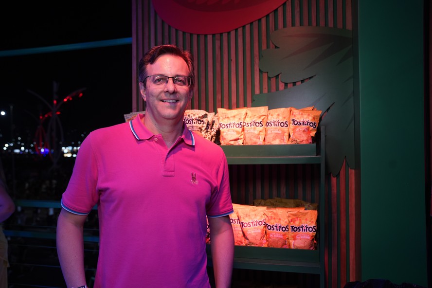 Alexandre Carreteiro,presidente da companhia no Brasil,fala do lançamento do snack Tostitos,que marcou presença Rock in Rio — Foto: Divulgação