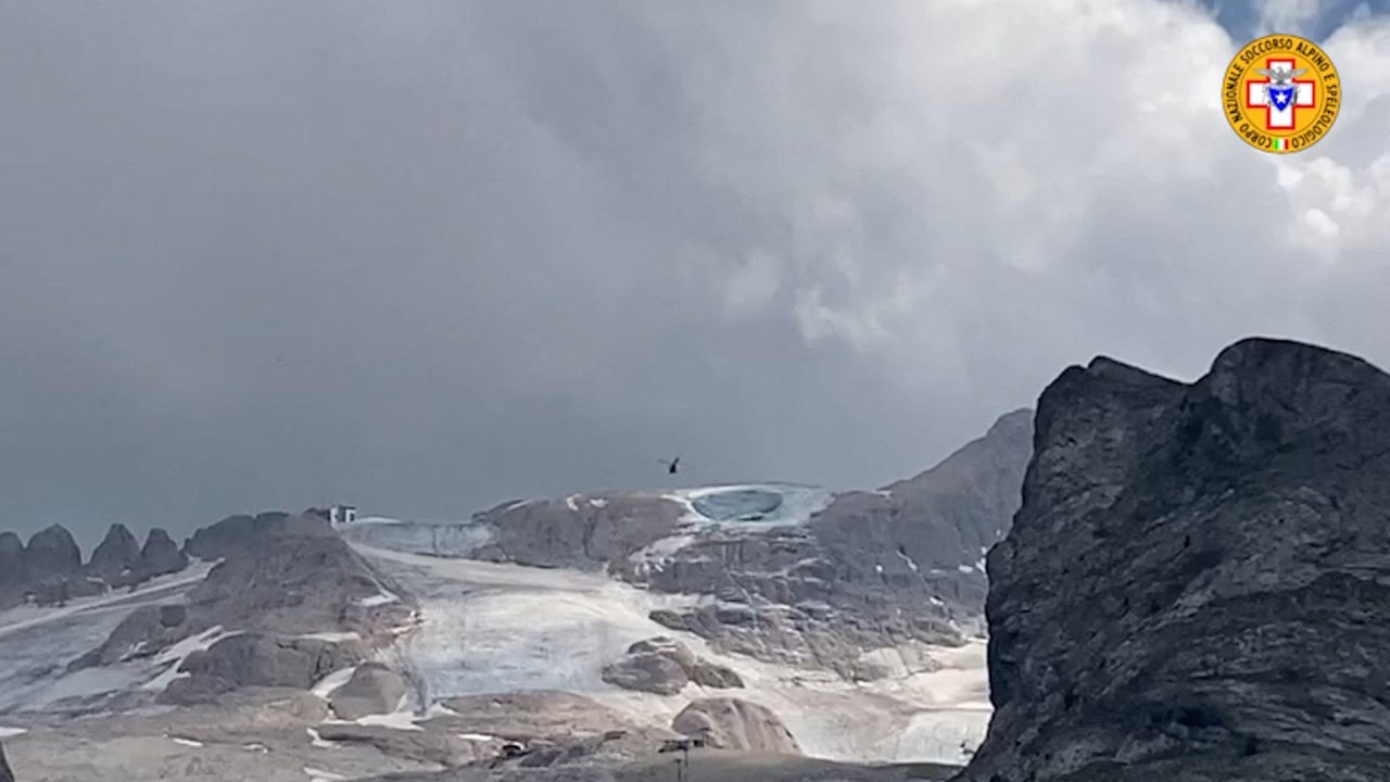 Geleira faz parte da montanha Marmolada,que tem cerca de 3.300 metros de altura e está situada na cordilheira das Dolomitas — Foto: SOCCORSO ALPINO / AFP
