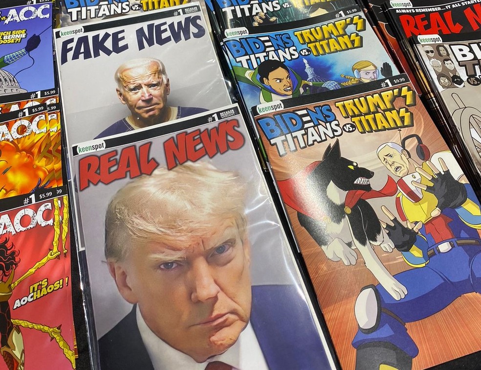 Revistinhas com Trump e Biden na Comic-Con — Foto: Mariana Rosário