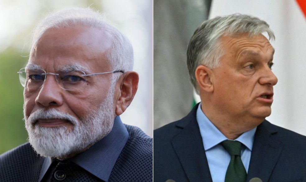 Narendra Modi (E) e Viktor Orbán (D) — Foto: AFP