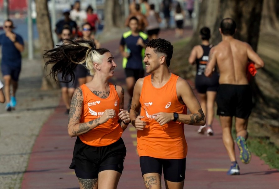 João Victor Newlands e Júlia Cruz se conheceram no grupo de corrida e começaram a namorar — Foto: Gabriel de Paiva/Agência O Globo