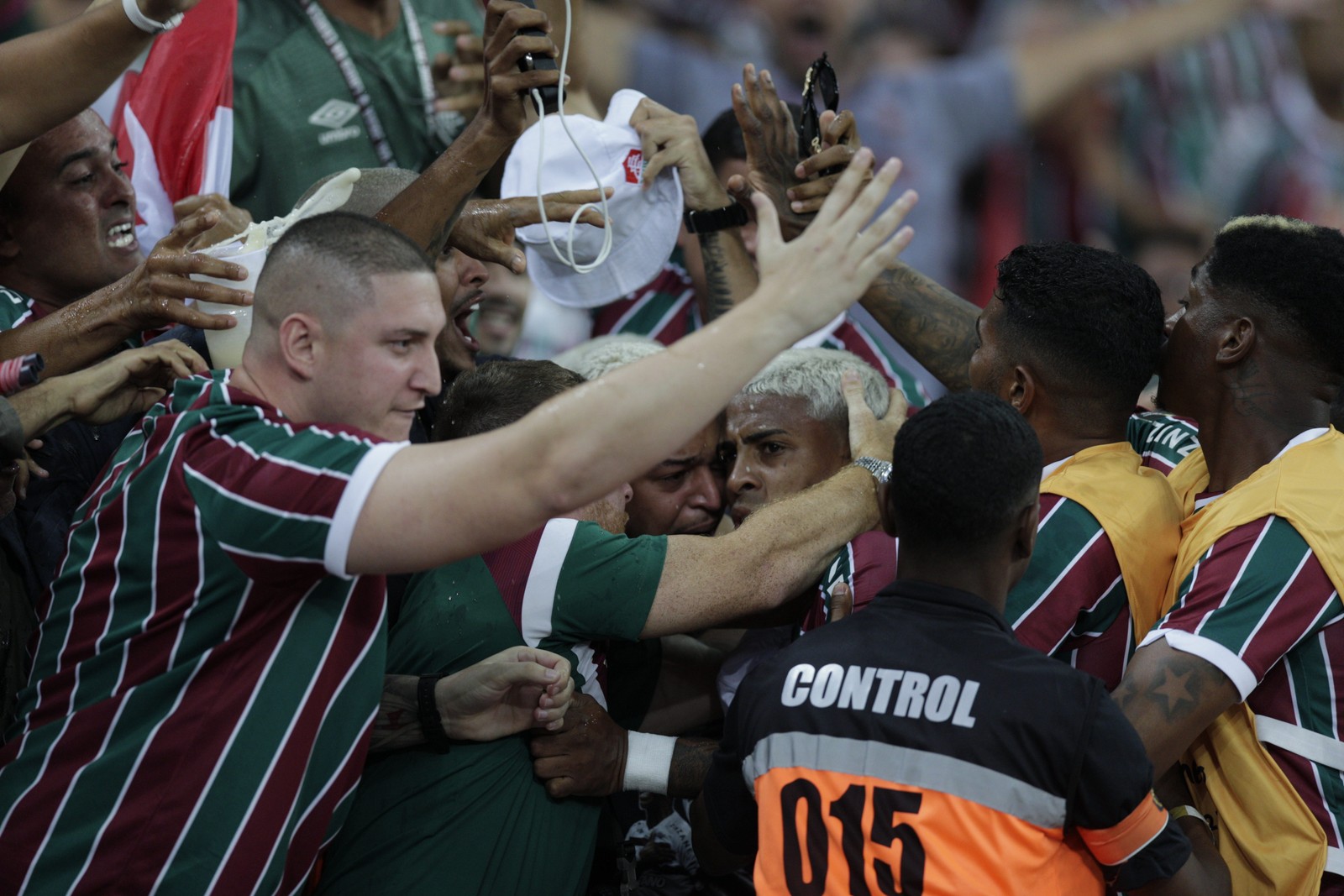 Fluminense x Boca Juniors - John Kennedy comemora com a torcida o segundo gol do fluminense no jogo. — Foto: Alexandre Cassiano / Agência O GLOBO