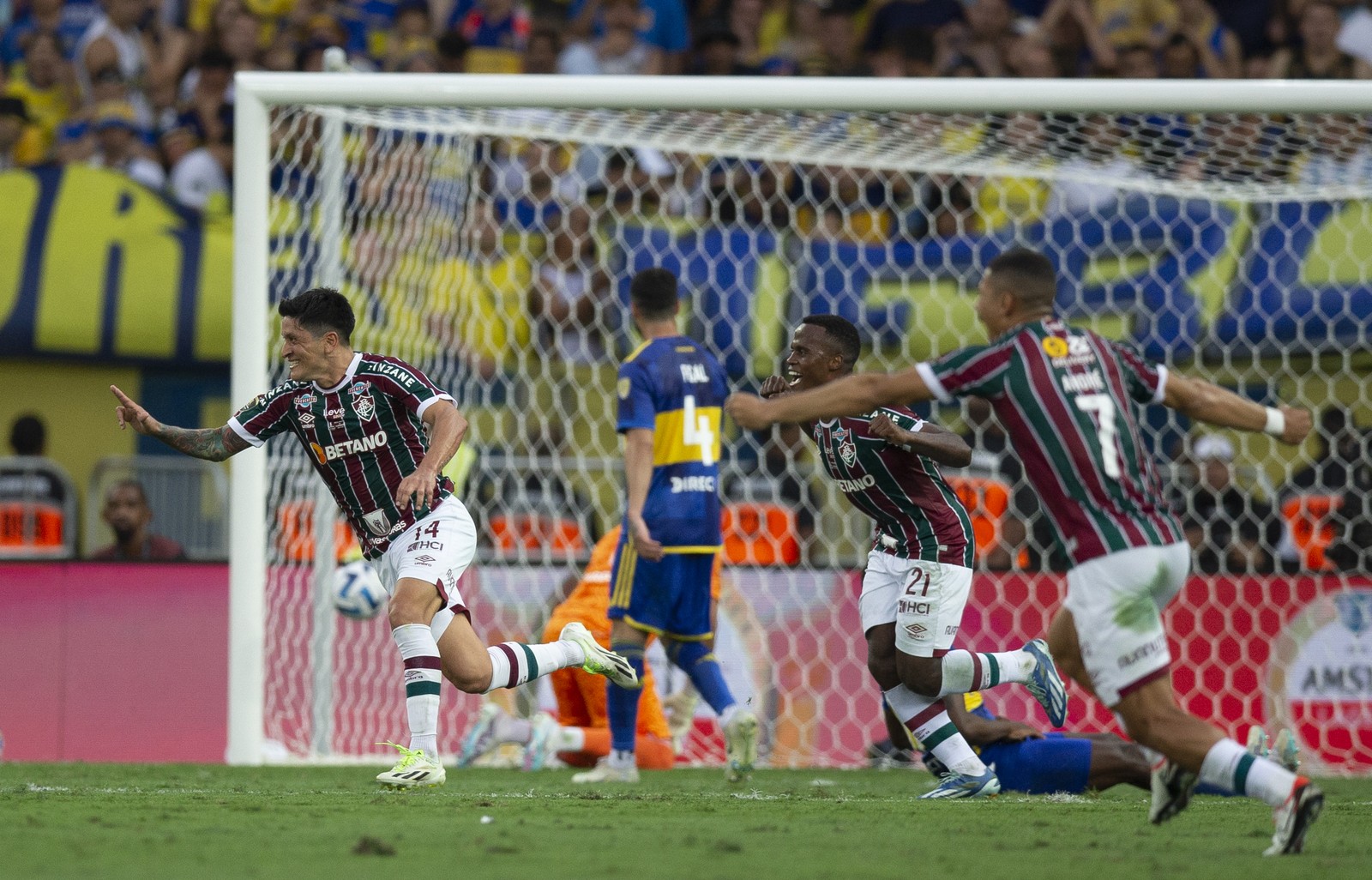 Copa Libertadores 2023 - Jogo da final entre Boca Juniors x Fluminense no Maracanã. Cano comemora o primeiro gol do jogo — Foto: Alexandre Cassiano / Agência O Globo