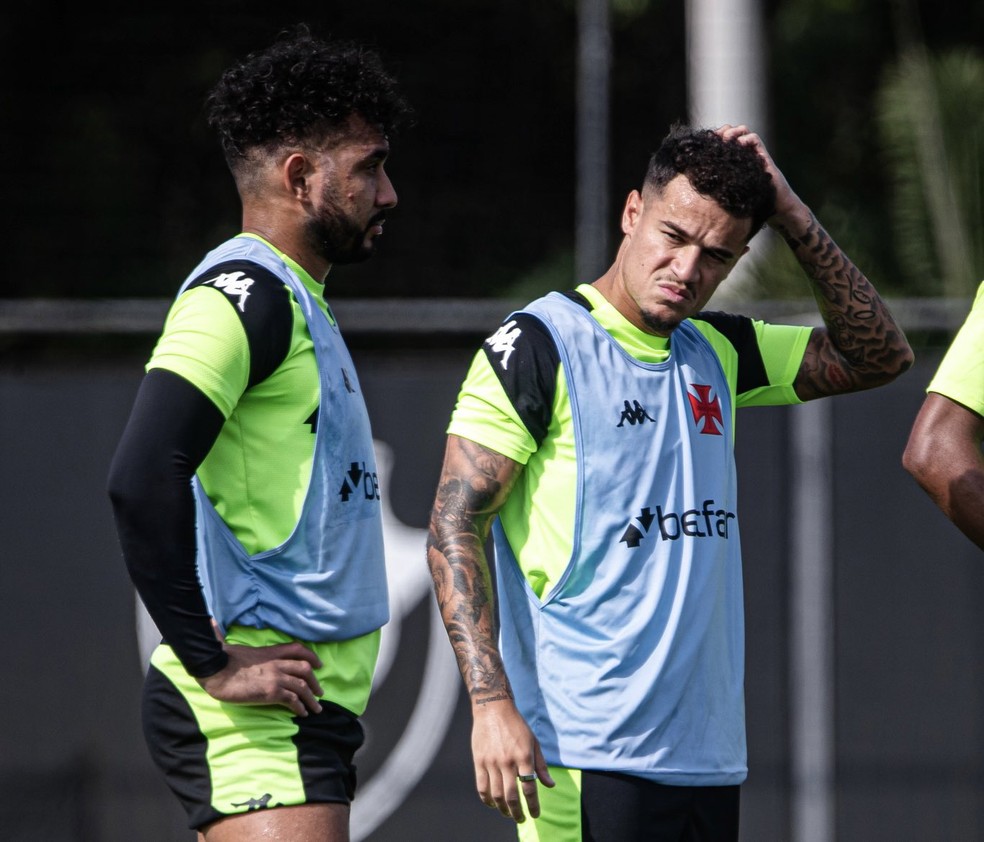 Payet e Coutinho em treino do Vasco — Foto: Leandro Amorim/Vasco