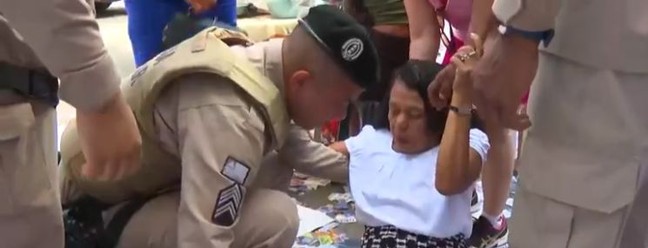 Idosa caiu em Salvador em buraco coberto por santinhos — Foto: Reprodução/TV Bahia