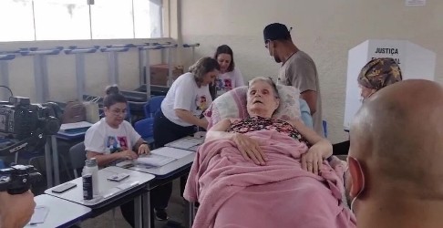 Idosa de 72 anos chega de ambulância e maca para votar em escola de Porto Velho — Foto: Reprodução/Rreads