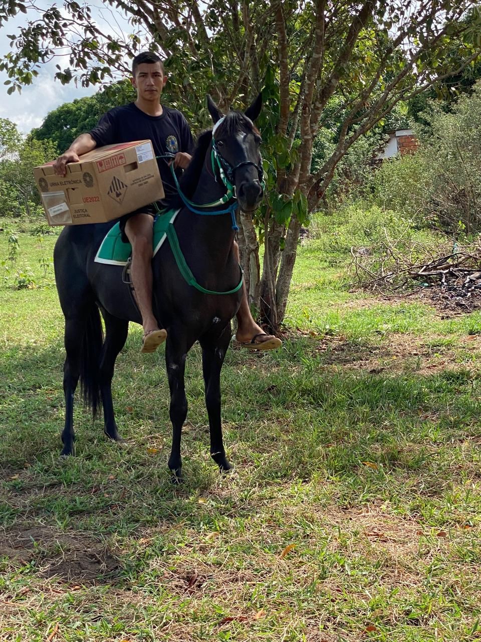 Servidor do TRE-PA usa cavalo para transportar urnas aos locais de votação — Foto: Divulgação TRE-PA