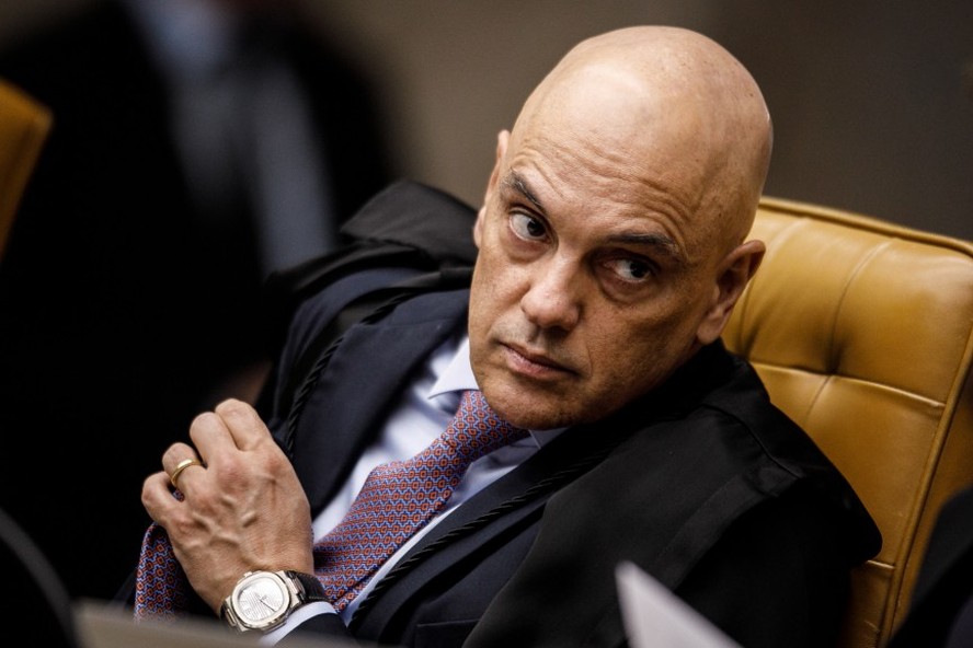 O ministro Alexandre de Moraes,durante sessão do STF — Foto: Brenno Carvalho/Agência O Globo/03-10-2024